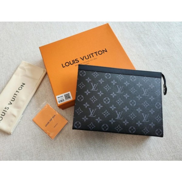 모델명 M61692 타입 클러치/파우치(케이스) 소재 모노그램 이클립스 캔버스 / 가죽 트리밍(소가죽) / 텍스타일(마이크로파이버) 내피 컬러 모노그램 이클립스(블랙·그레이) 사이즈 27 x 21 x 6 cm 스트랩(탈부착) 스트랩 없음(파우치/클러치 타입)